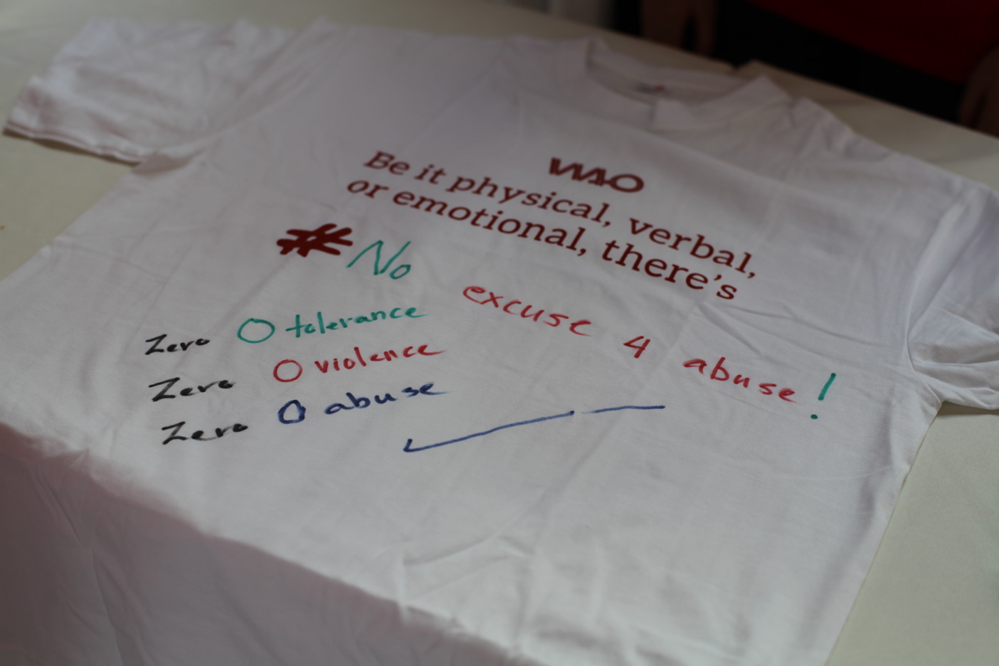 During the event, #NoExcuseForAbuse T-shirts were given out to the public.